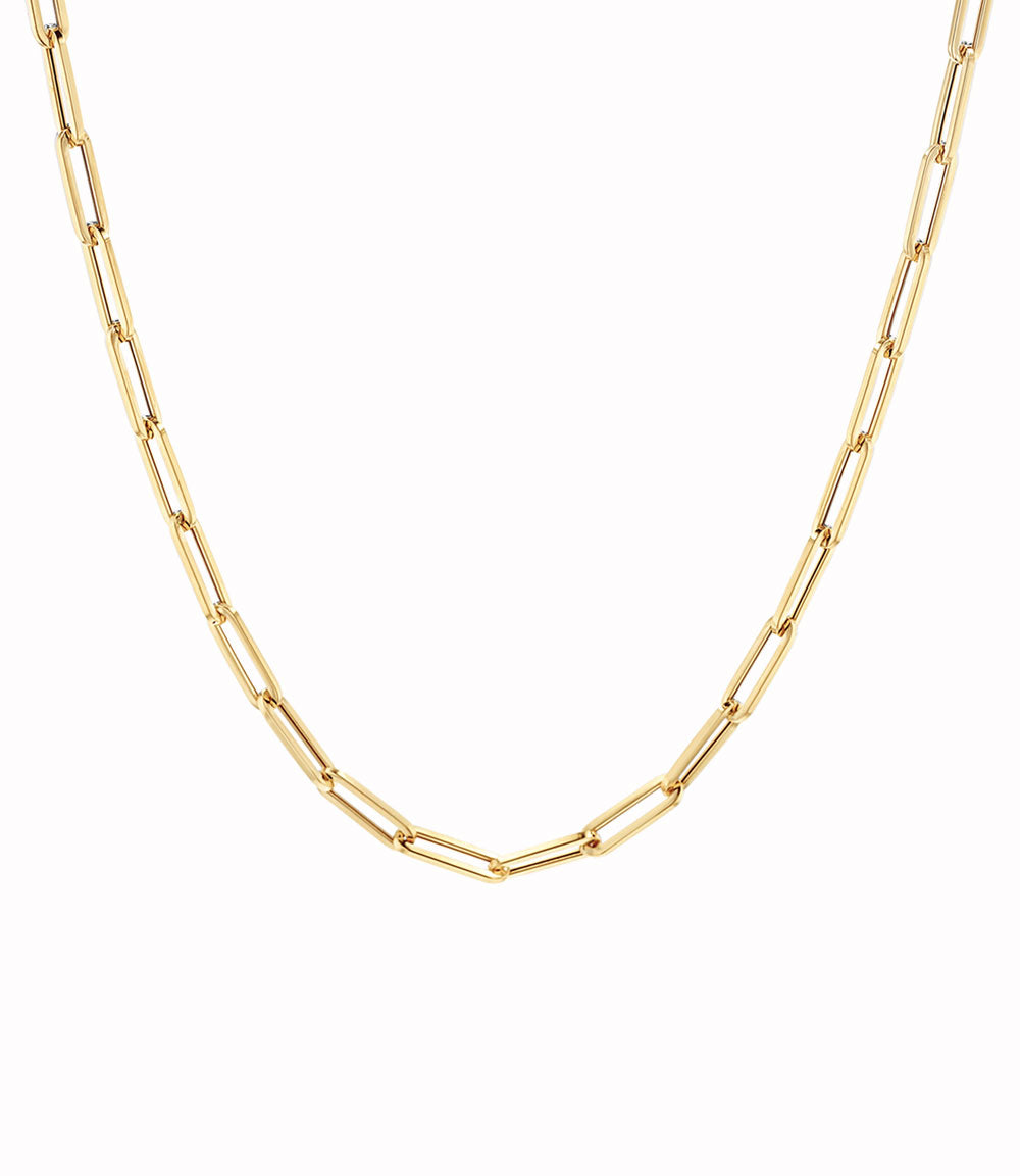 Your jewelry box has been waiting for this chain - versatile because you can wear it at any length and oh so chic! Our large paper clip chain looks amazing alone or paired with your favorite charms. It's a must-have!