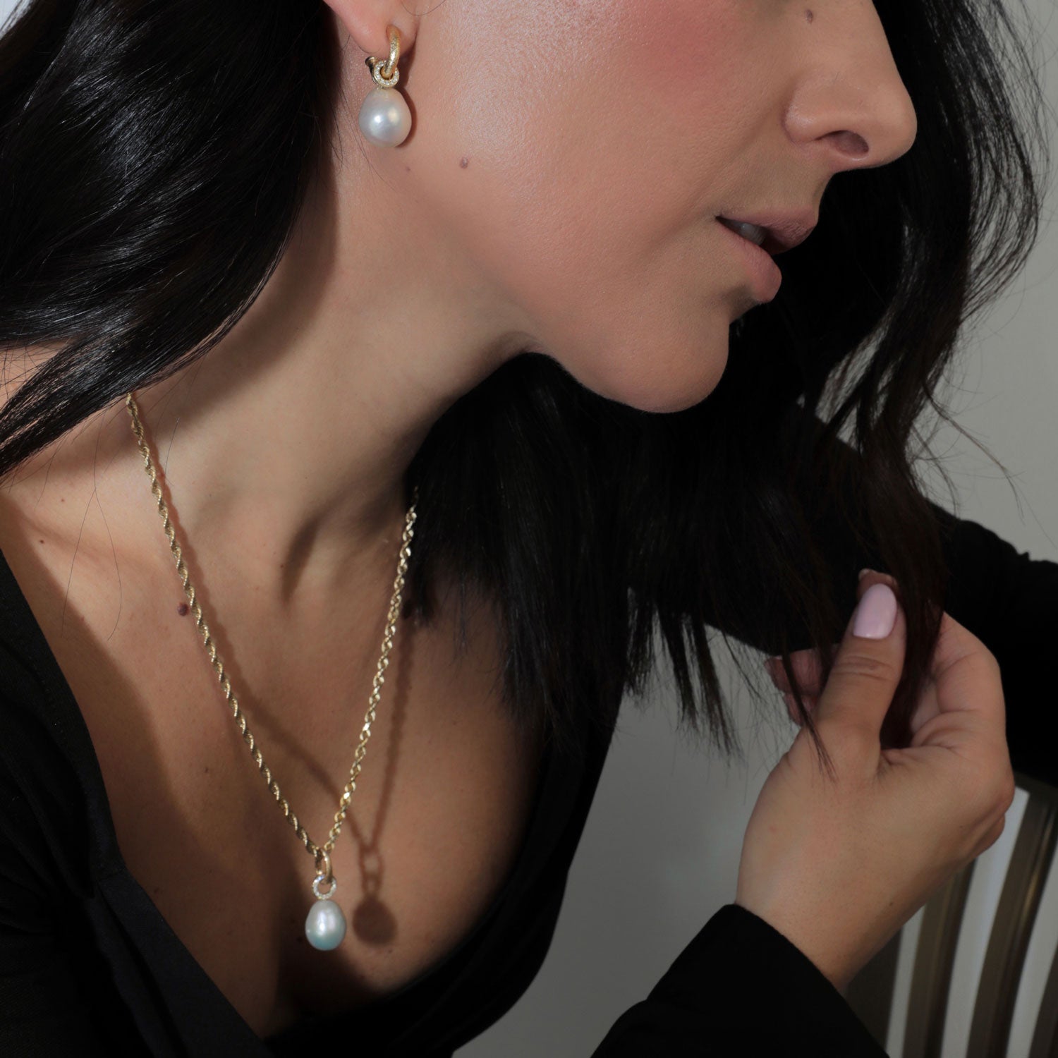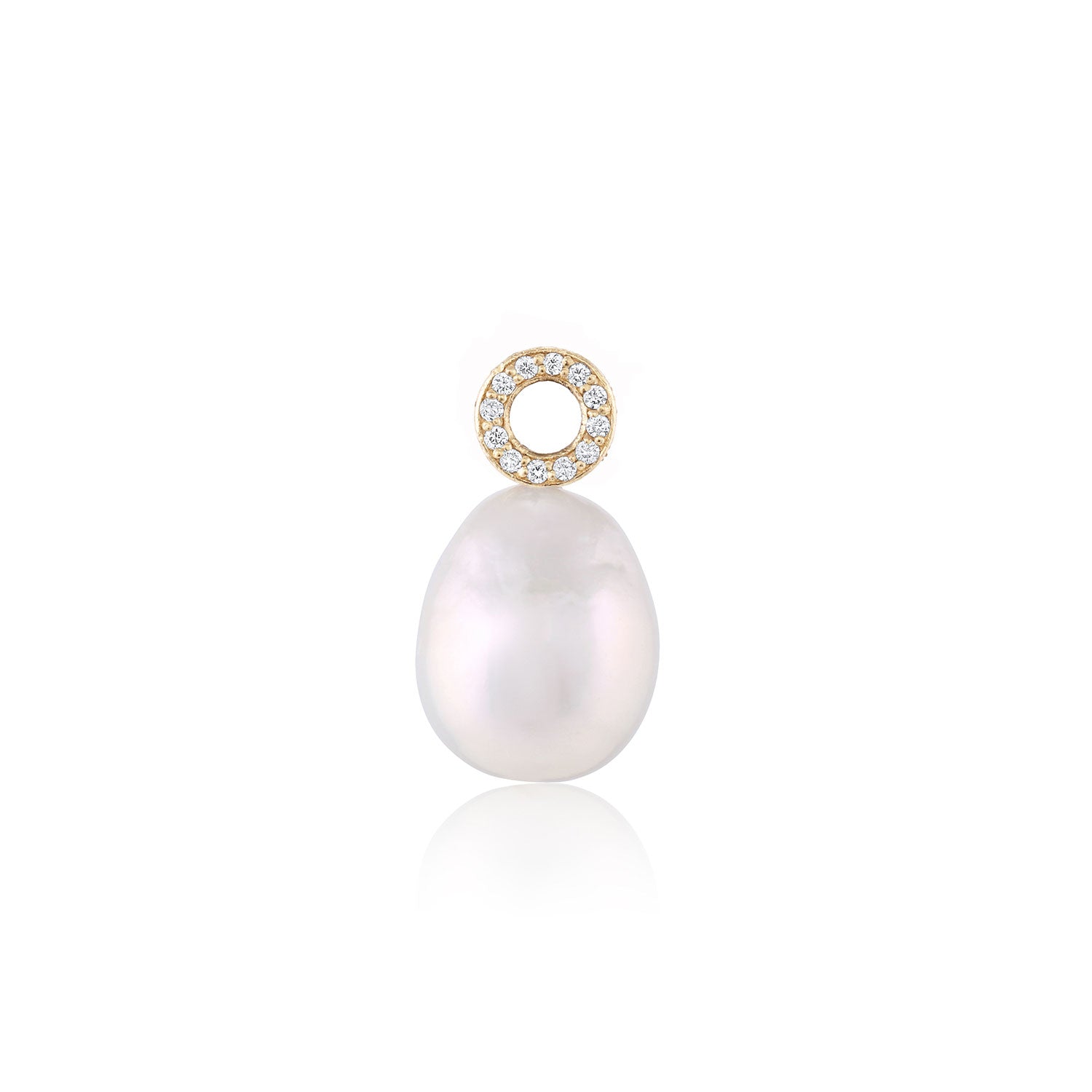 We took our diamond disk and combined it with our baroque pearl and created magic. Wear it on your hoop or as necklace charm with our bail.