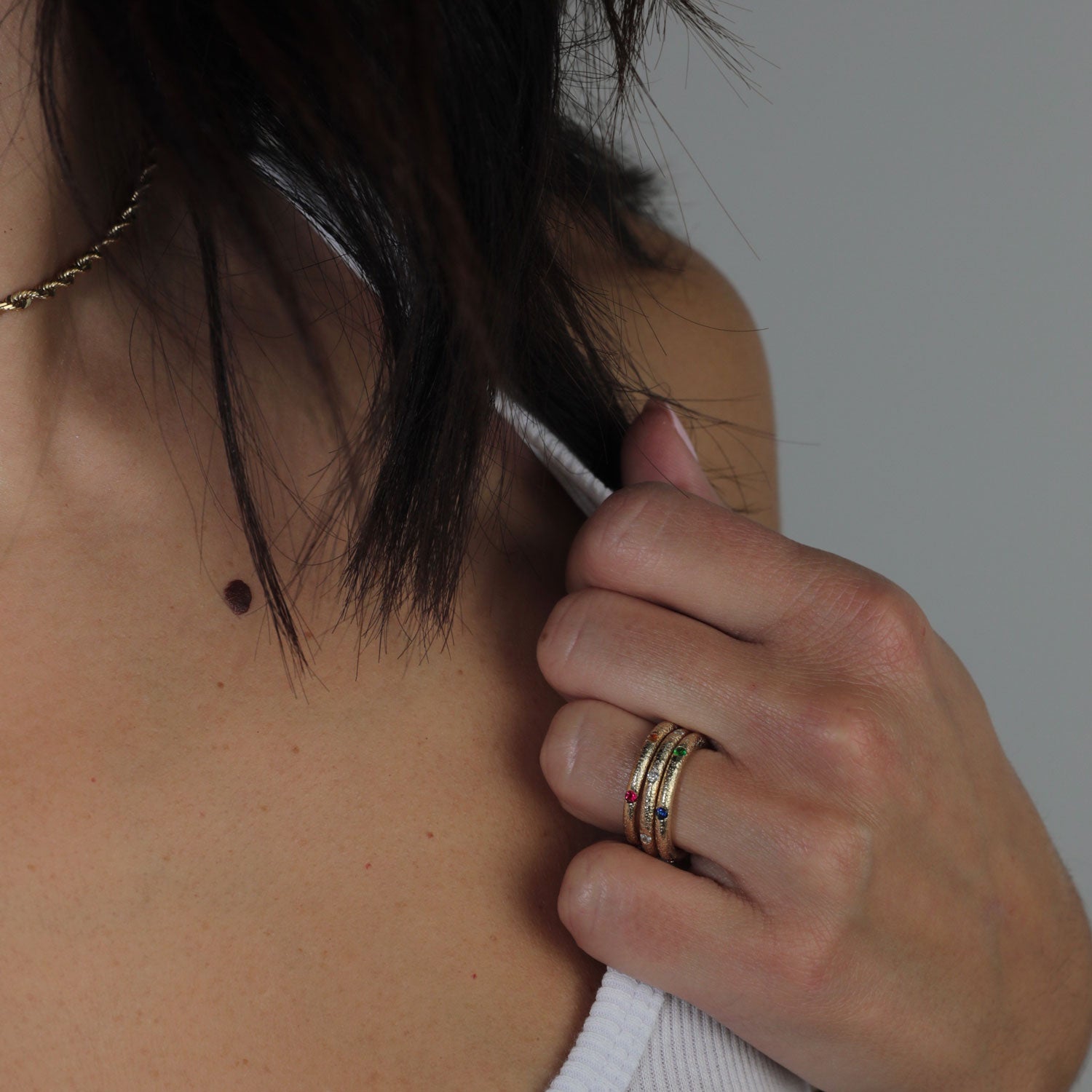 The perfect stacking ring, whether to commemorate a new family addition or a life milestone. Choose your favorite stone or customize it to include birthstones. The best part about it, it looks gorgeous worn alone too.
